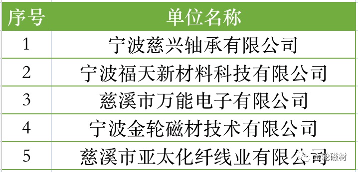 Récemment, le Bureau municipal de l'économie et des technologies de l'information de Ningbo a annoncé la liste des usines vertes cinq et quatre étoiles à Ningbo (la première étape), et Jinlun Magnetic Material a été sélectionné avec succès comme usine verte à Ningbo. Au total, 9 entreprises de la ville de Cixi ont été sélectionnées. Parmi elles, 4 entreprises ont été sélectionnées comme usines vertes 5 étoiles et 5 entreprises ont été sélectionnées comme usines vertes 4 étoiles.