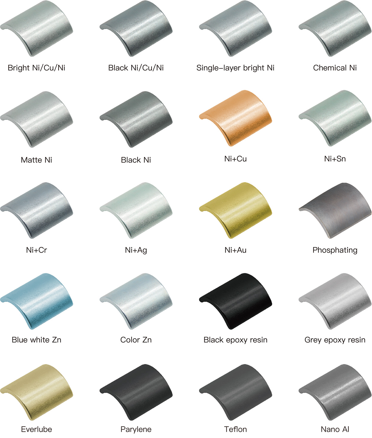 Jinlun Magnetic Materials développe activement une technologie de traitement de surface et peut personnaliser le zinc, l'aluminium, le nickel, la phosphatation, l'époxy et d'autres types de protection pour répondre aux exigences d'utilisation à long terme dans diverses conditions difficiles. Jinlun Magnetic Materials dispose de lignes de production entièrement automatiques et respectueuses de l'environnement pour plusieurs types de placage et s'engage à améliorer continuellement les capacités de processus, à réduire la consommation de ressources et à améliorer les performances environnementales.
