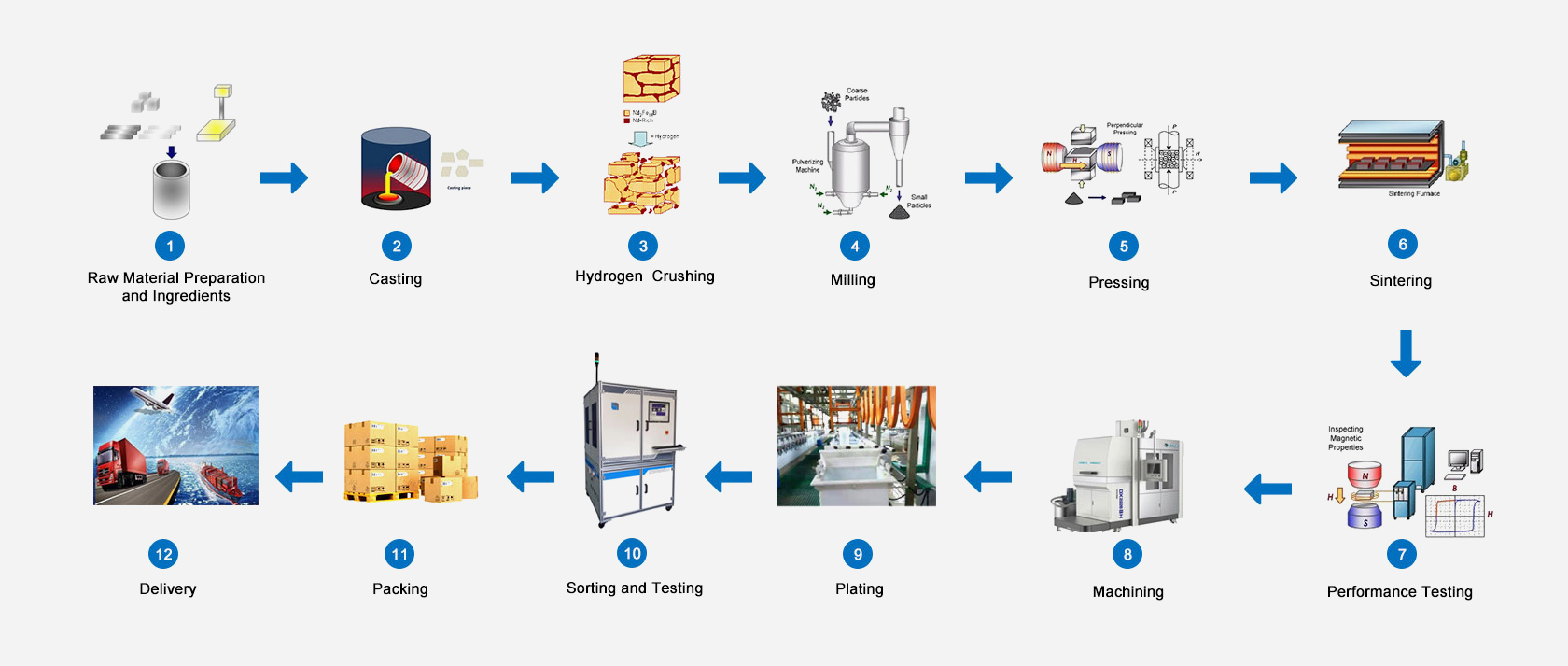 Jinlun Magnet est une entreprise technologiquement innovante avec une échelle de production en développement rapide, et ses performances de produit et sa capacité de production sont à un niveau élevé dans l'industrie. Il insiste sur la mise à niveau et la transformation continue des équipements et des processus de production pour créer un atelier numérique intelligent qui retrace l'ensemble du cycle de vie des produits.